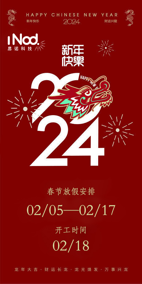 龍年大吉,感恩有你 | 易諾科技2024年春節放假通知