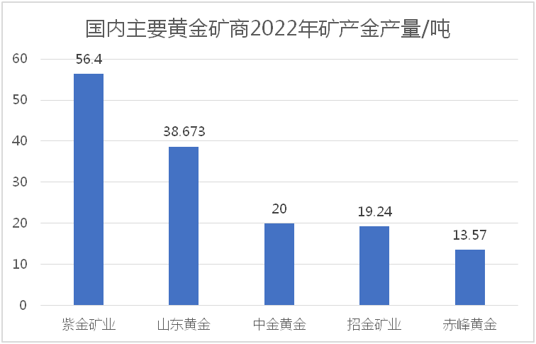 2022年,招金礦業(yè)礦產(chǎn)黃金19.24噸,中金黃金2022年前三季度礦產(chǎn)金產(chǎn)量為14.9噸,全年預(yù)計約19-20噸,赤峰黃金上一年度實際完成黃金產(chǎn)量13.57噸,首次突破10噸。招金和中金、赤峰黃金,形成了國內(nèi)黃金產(chǎn)量的第二梯隊。